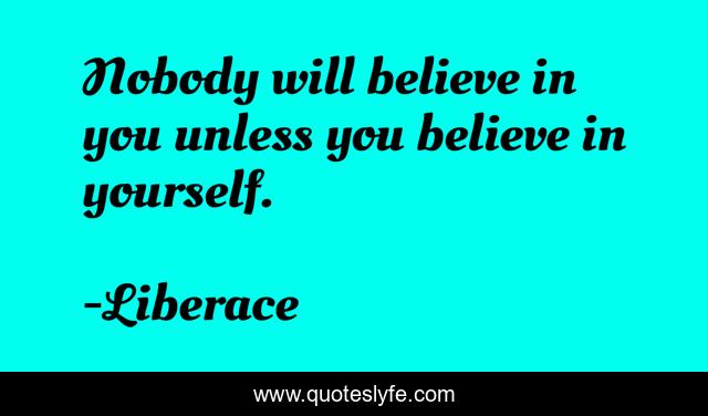 This page presents the quote "Nobody will believe in you unless you believe in yourself.". Author of this quote is Liberace. .