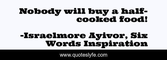 "Israelmore Ayivor, Six Words Inspiration Quotes." Quoteslyfe.com, 2025. Mon. 08 Dec. 2025. <https://www.quoteslyfe.com/quote/Nobody-will-buy-a-half-cooked-food-29251>.