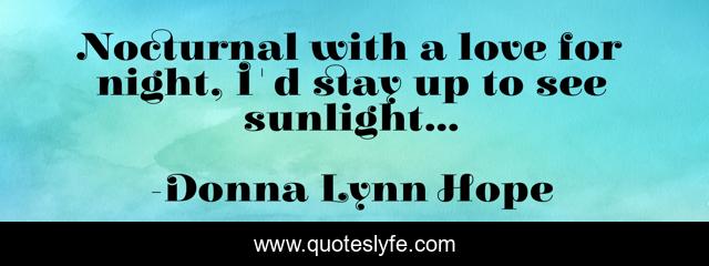 "Donna Lynn Hope Quotes." Quoteslyfe.com, 2025. Sun. 07 Dec. 2025. <https://www.quoteslyfe.com/quote/Nocturnal-with-a-love-for-night-I-150212>.