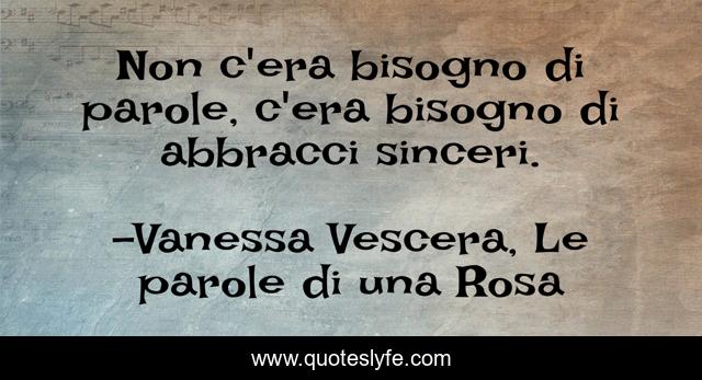 This page presents the quote "Non c'era bisogno di parole, c'era bisogno di abbracci sinceri.". Author of this quote is Vanessa Vescera, Le parole di una Rosa. This quote is about quotes, book-lovers,.