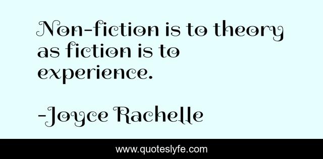"Joyce Rachelle Quotes." Quoteslyfe.com, 2025. Sat. 06 Dec. 2025. <https://www.quoteslyfe.com/quote/Non-fiction-is-to-theory-as-fiction-43839>.