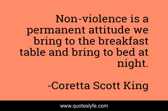 This page presents the quote "Non-violence is a permanent attitude we bring to the breakfast table and bring to bed at night.". Author of this quote is Coretta Scott King. This quote is about breakfast, night,.