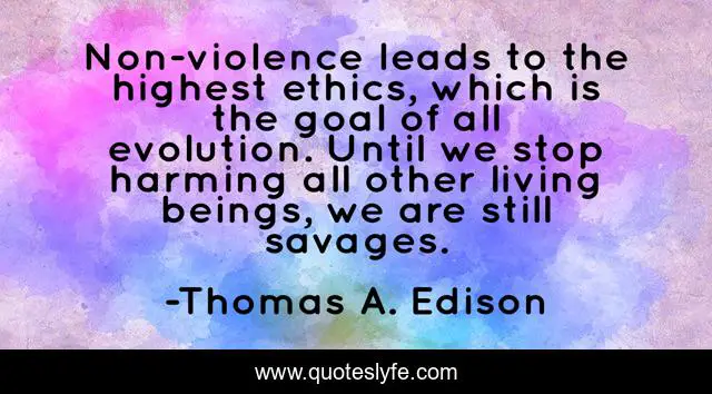 "Thomas A. Edison Quotes." Quoteslyfe.com, 2025. Tue. 09 Dec. 2025. <https://www.quoteslyfe.com/quote/Non-violence-leads-to-the-highest-ethics-205393>.