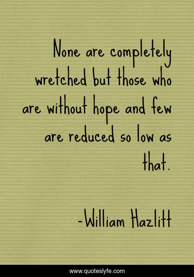"William Hazlitt Quotes." Quoteslyfe.com, 2025. Mon. 08 Dec. 2025. <https://www.quoteslyfe.com/quote/None-are-completely-wretched-but-those-who-268472>.