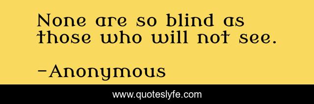 This page presents the quote "None are so blind as those who will not see.". Author of this quote is Anonymous. .