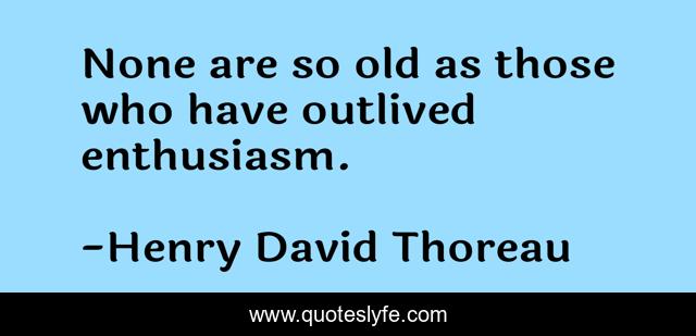 This page presents the quote "None are so old as those who have outlived enthusiasm.". Author of this quote is Henry David Thoreau. This quote is about youth, enthusiasm, age, happiness,.
