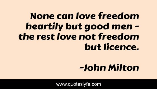 "John Milton Quotes." Quoteslyfe.com, 2025. Sat. 06 Dec. 2025. <https://www.quoteslyfe.com/quote/None-can-love-freedom-heartily-but-good-269573>.