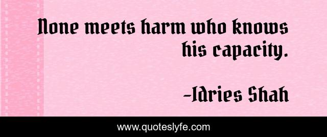 "Idries Shah Quotes." Quoteslyfe.com, 2025. Sat. 06 Dec. 2025. <https://www.quoteslyfe.com/quote/None-meets-harm-who-knows-his-capacity-203473>.