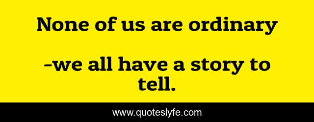 "we all have a story to tell. Quotes." Quoteslyfe.com, 2025. Sat. 06 Dec. 2025. <https://www.quoteslyfe.com/quote/None-of-us-are-ordinary-224319>.
