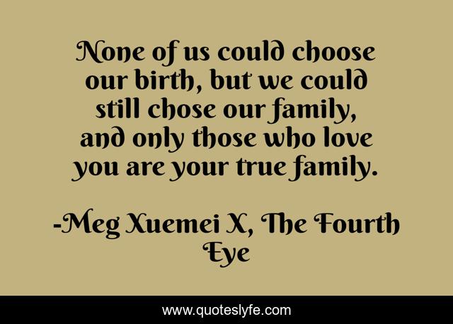 "Meg Xuemei X, The Fourth Eye Quotes." Quoteslyfe.com, 2025. Mon. 08 Dec. 2025. <https://www.quoteslyfe.com/quote/None-of-us-could-choose-our-birth-81969>.