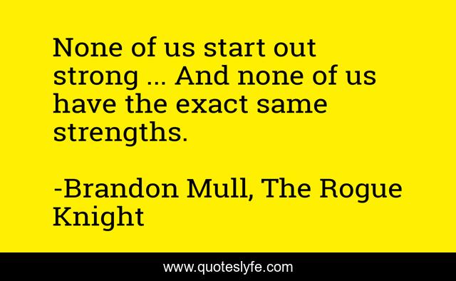 "Brandon Mull, The Rogue Knight Quotes." Quoteslyfe.com, 2025. Sat. 06 Dec. 2025. <https://www.quoteslyfe.com/quote/None-of-us-start-out-strong-And-104638>.