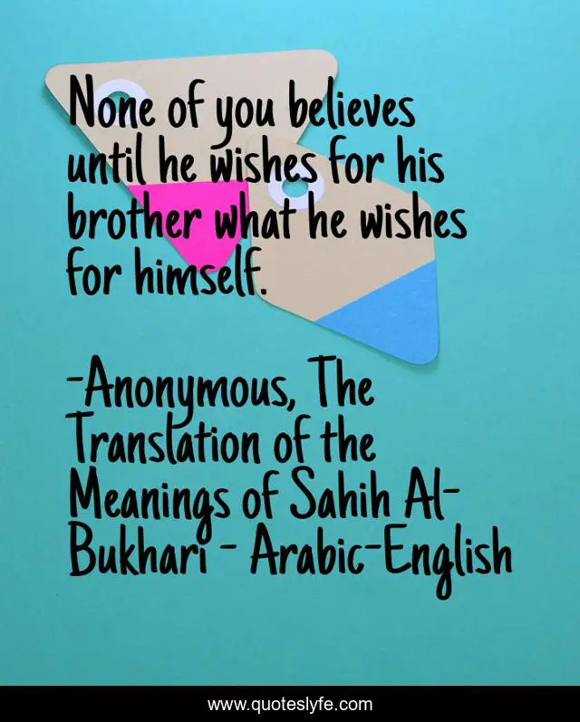 "Anonymous, The Translation of the Meanings of Sahih Al-Bukhari - Arabic-English Quotes." Quoteslyfe.com, 2025. Fri. 05 Dec. 2025. <https://www.quoteslyfe.com/quote/None-of-you-believes-until-he-wishes-110967>.