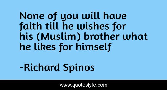 This page presents the quote "None of you will have faith till he wishes for his (Muslim) brother what he likes for himself". Author of this quote is Richard Spinos. .