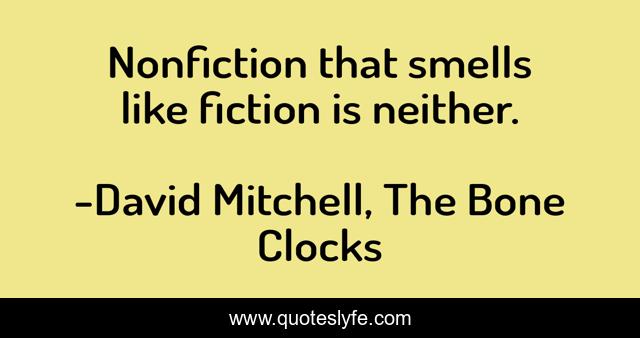 "David Mitchell, The Bone Clocks Quotes." Quoteslyfe.com, 2025. Sat. 06 Dec. 2025. <https://www.quoteslyfe.com/quote/Nonfiction-that-smells-like-fiction-is-neither-100943>.