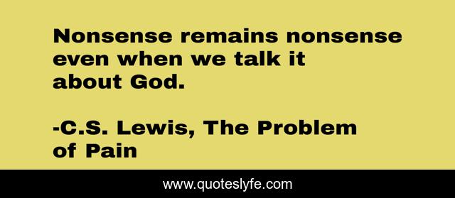 This page presents the quote "Nonsense remains nonsense even when we talk it about God.". Author of this quote is C.S. Lewis, The Problem of Pain. .