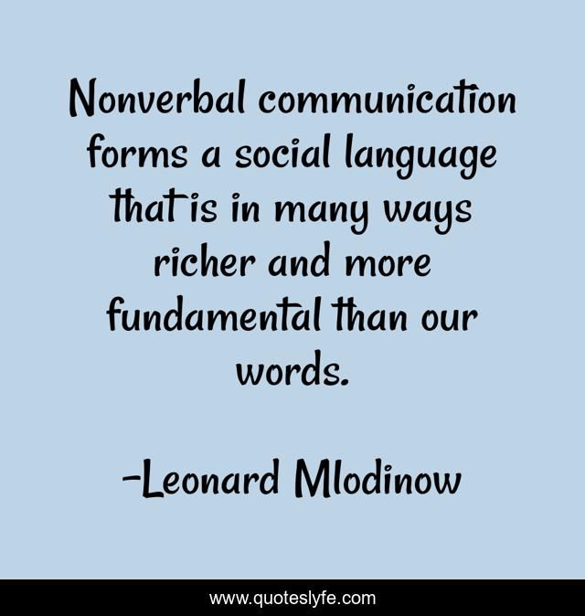 This page presents the quote "Nonverbal communication forms a social language that is in many ways richer and more fundamental than our words.". Author of this quote is Leonard Mlodinow. This quote is about language, words, social,.