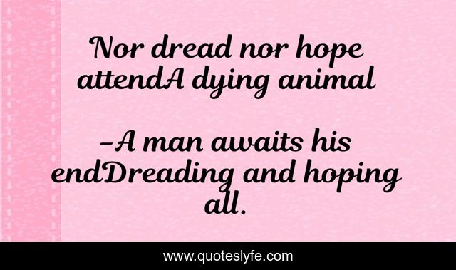 This page presents the quote "Nor dread nor hope attendA dying animal". Author of this quote is A man awaits his endDreading and hoping all.. .