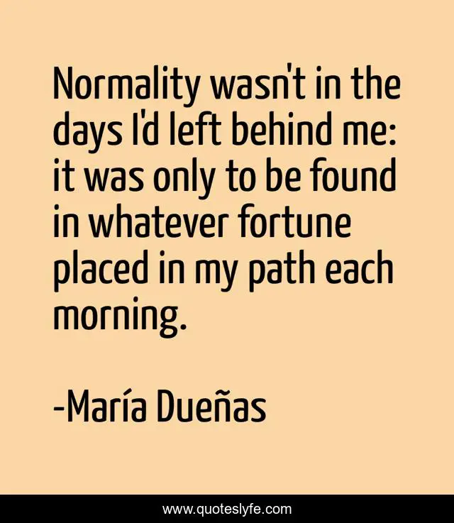 This page presents the quote "Normality wasn't in the days I'd left behind me: it was only to be found in whatever fortune placed in my path each morning.". Author of this quote is María Dueñas. This quote is about life-philosophy, past-and-future, fortune, normality,.