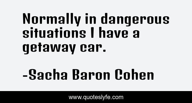 This page presents the quote "Normally in dangerous situations I have a getaway car.". Author of this quote is Sacha Baron Cohen. This quote is about dangerous, situations,.