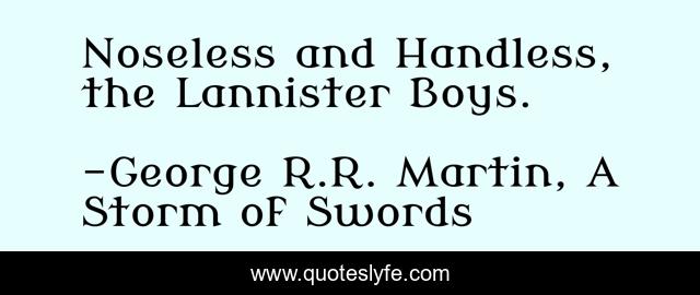 "George R.R. Martin, A Storm of Swords Quotes." Quoteslyfe.com, 2025. Mon. 08 Dec. 2025. <https://www.quoteslyfe.com/quote/Noseless-and-Handless-the-Lannister-Boys-6212>.