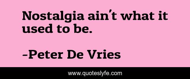 "Peter De Vries Quotes." Quoteslyfe.com, 2025. Sun. 07 Dec. 2025. <https://www.quoteslyfe.com/quote/Nostalgia-ain-t-what-it-used-to-217281>.