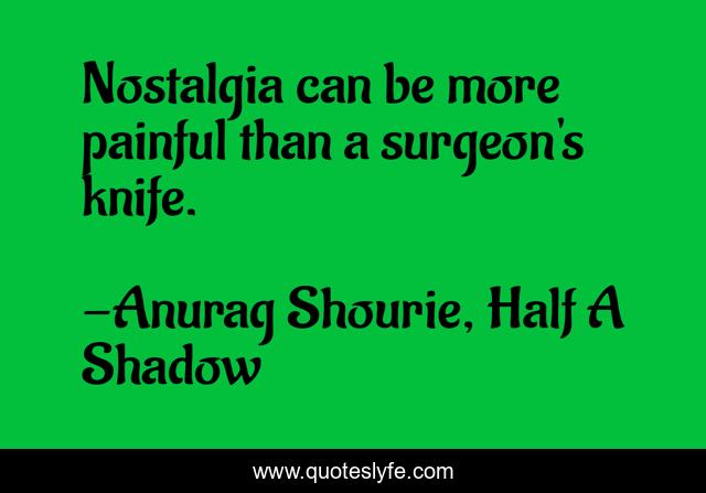 "Anurag Shourie, Half A Shadow Quotes." Quoteslyfe.com, 2025. Sat. 06 Dec. 2025. <https://www.quoteslyfe.com/quote/Nostalgia-can-be-more-painful-than-a-75765>.
