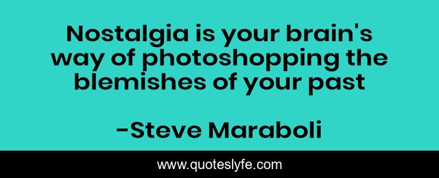 This page presents the quote "Nostalgia is your brain's way of photoshopping the blemishes of your past". Author of this quote is Steve Maraboli. This quote is about past, brain, let-go, nostalgia,.