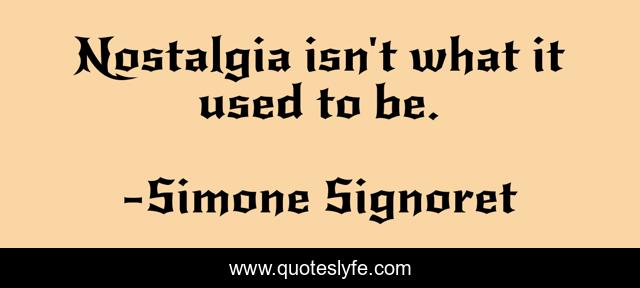 "Simone Signoret Quotes." Quoteslyfe.com, 2025. Sat. 06 Dec. 2025. <https://www.quoteslyfe.com/quote/Nostalgia-isn-t-what-it-used-to-270655>.