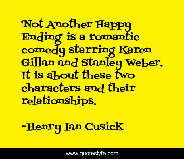 This page presents the quote "'Not Another Happy Ending' is a romantic comedy starring Karen Gillan and Stanley Weber. It is about these two characters and their relationships.". Author of this quote is Henry Ian Cusick. This quote is about relationships, happy, ending,.