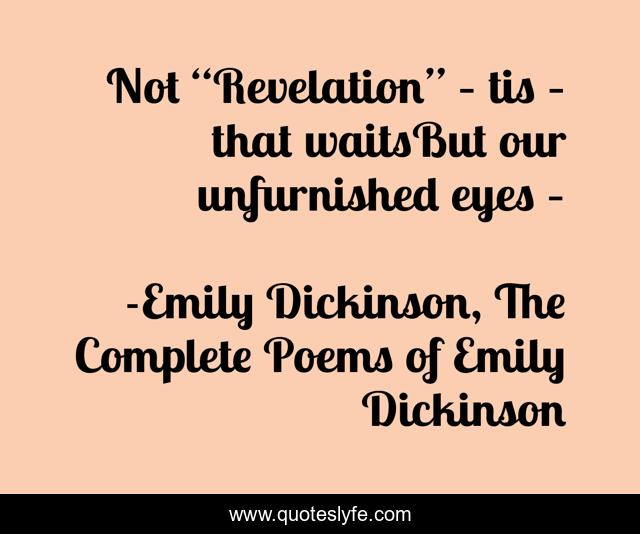 "Emily Dickinson, The Complete Poems of Emily Dickinson Quotes." Quoteslyfe.com, 2025. Tue. 09 Dec. 2025. <https://www.quoteslyfe.com/quote/Not-Revelation-tis-that-waitsBut-our-unfurnished-61595>.