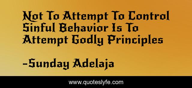 This page presents the quote "Not To Attempt To Control Sinful Behavior Is To Attempt Godly Principles". Author of this quote is Sunday Adelaja. This quote is about control, attempt, sinful, godly, principle, behavior,.