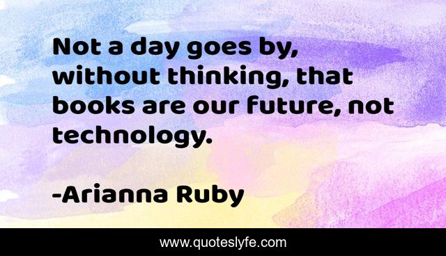 This page presents the quote "Not a day goes by, without thinking, that books are our future, not technology.". Author of this quote is Arianna Ruby. This quote is about independent, love, future, inspirational, enthusiasm, affection,.