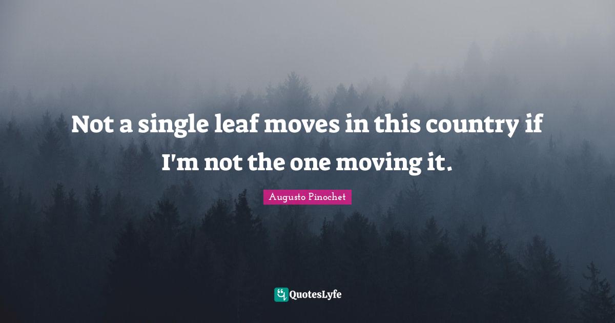 This page presents the quote "Not a single leaf moves in this country if I'm not the one moving it.". Author of this quote is Augusto Pinochet. This quote is about single, country, moving, leafs,.