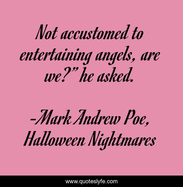 "Mark Andrew Poe, Halloween Nightmares Quotes." Quoteslyfe.com, 2025. Sun. 07 Dec. 2025. <https://www.quoteslyfe.com/quote/Not-accustomed-to-entertaining-angels-are-we-194390>.