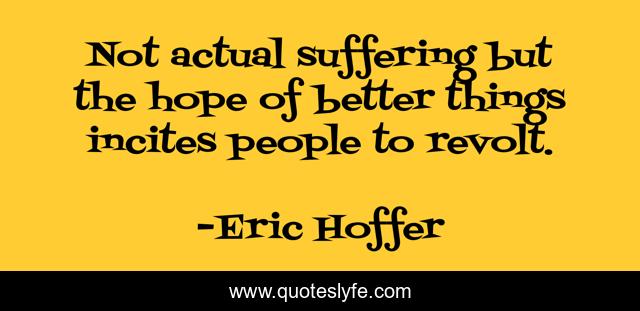 This page presents the quote "Not actual suffering but the hope of better things incites people to revolt.". Author of this quote is Eric Hoffer. This quote is about revolution, reform,.