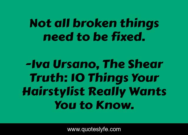 "Iva Ursano, The Shear Truth: 10 Things Your Hairstylist Really Wants You to Know. Quotes." Quoteslyfe.com, 2025. Fri. 05 Dec. 2025. <https://www.quoteslyfe.com/quote/Not-all-broken-things-need-to-be-83307>.