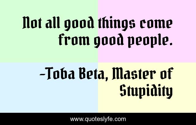 This page presents the quote "Not all good things come from good people.". Author of this quote is Toba Beta, Master of Stupidity. .
