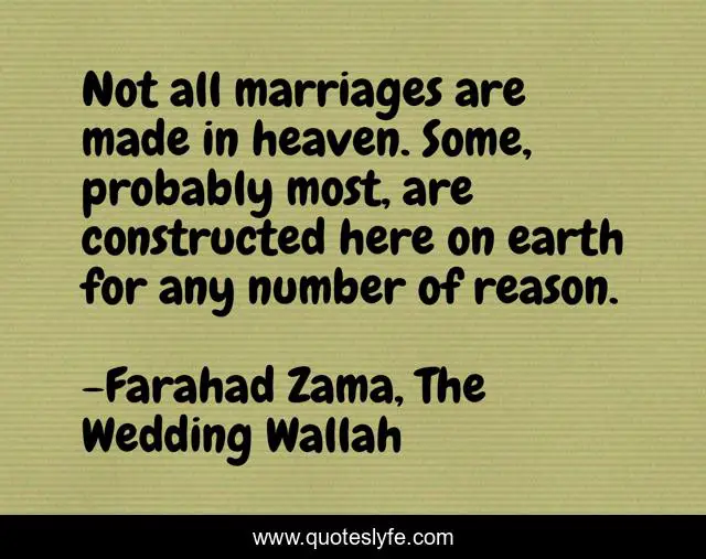 "Farahad Zama, The Wedding Wallah Quotes." Quoteslyfe.com, 2025. Fri. 05 Dec. 2025. <https://www.quoteslyfe.com/quote/Not-all-marriages-are-made-in-heaven-76783>.