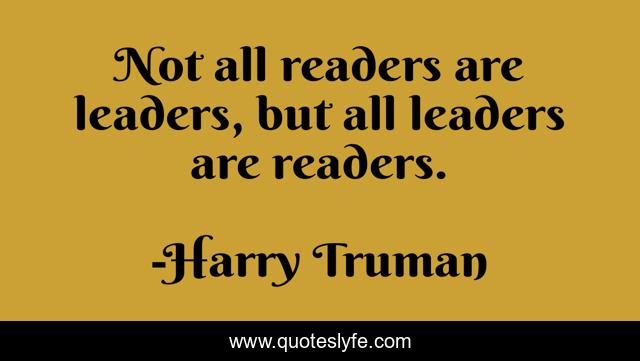 This page presents the quote "Not all readers are leaders, but all leaders are readers.". Author of this quote is Harry Truman. This quote is about leadership, reading,.