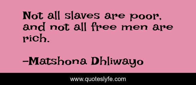 "Matshona Dhliwayo Quotes." Quoteslyfe.com, 2025. Sat. 06 Dec. 2025. <https://www.quoteslyfe.com/quote/Not-all-slaves-are-poor-and-not-225310>.