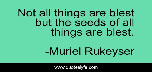 This page presents the quote "Not all things are blest but the seeds of all things are blest.". Author of this quote is Muriel Rukeyser. .
