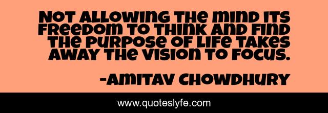 This page presents the quote "Not allowing the mind its freedom to think and find the purpose of life takes away the vision to focus.". Author of this quote is Amitav Chowdhury. This quote is about life, consciousness, freedom, focus, spirituality, vision,.