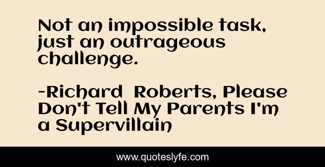 "Richard Roberts, Please Don't Tell My Parents I'm a Supervillain Quotes." Quoteslyfe.com, 2025. Fri. 05 Dec. 2025. <https://www.quoteslyfe.com/quote/Not-an-impossible-task-just-an-outrageous-94794>.