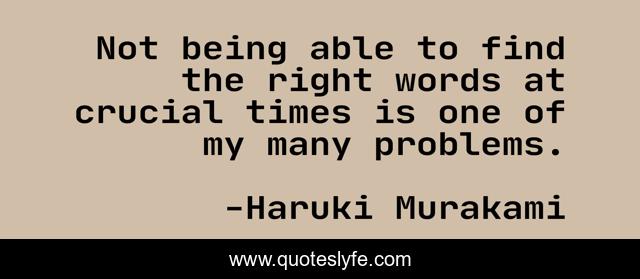 This page presents the quote "Not being able to find the right words at crucial times is one of my many problems.". Author of this quote is Haruki Murakami. .