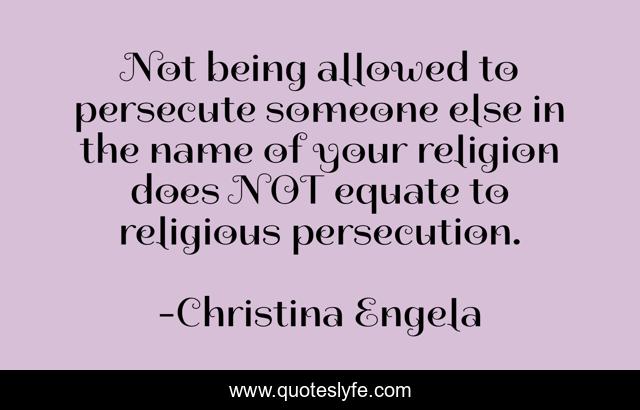This page presents the quote "Not being allowed to persecute someone else in the name of your religion does NOT equate to religious persecution.". Author of this quote is Christina Engela. This quote is about name, religion, equate, persecute, persecution, religious,.