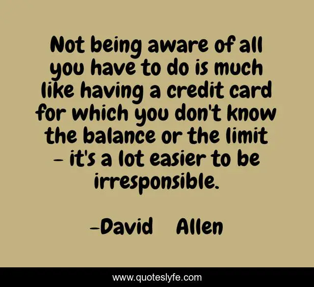 This page presents the quote "Not being aware of all you have to do is much like having a credit card for which you don't know the balance or the limit - it's a lot easier to be irresponsible.". Author of this quote is David Allen. .