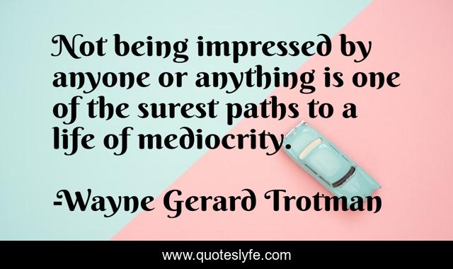 This page presents the quote "Not being impressed by anyone or anything is one of the surest paths to a life of mediocrity.". Author of this quote is Wayne Gerard Trotman. This quote is about mediocre-people, life, being-impressed, philosophy, mediocrity, life-philosophy, mediocre, life-and-living, philosophy-of-life,.