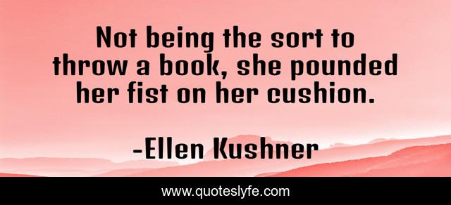 This page presents the quote "Not being the sort to throw a book, she pounded her fist on her cushion.". Author of this quote is Ellen Kushner. This quote is about books, reading,.