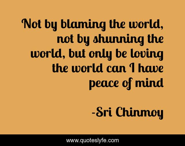 This page presents the quote "Not by blaming the world, not by shunning the world, but only be loving the world can I have peace of mind". Author of this quote is Sri Chinmoy. This quote is about world, love, affection,.