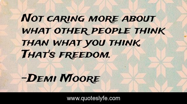 This page presents the quote "Not caring more about what other people think than what you think. That's freedom.". Author of this quote is Demi Moore. This quote is about caring, think, people,.
